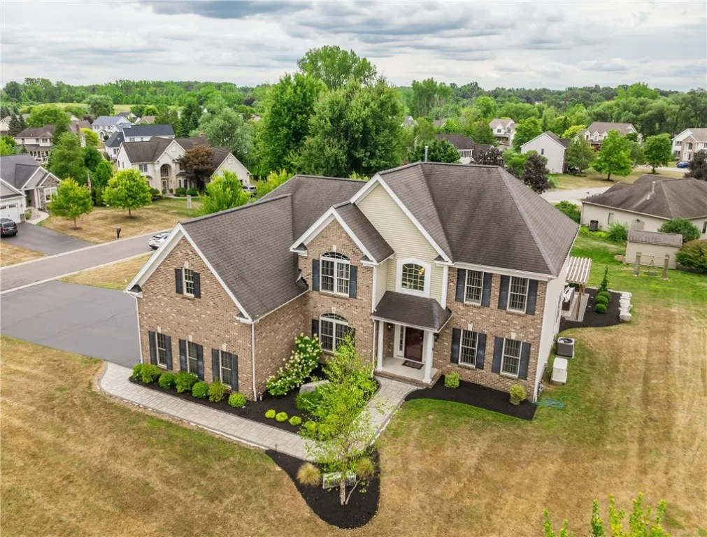 Welcome to 1 Cali Ridge! A luxurious custom built home in one of Penfield’s most sought after neighborhoods! From the impressive brick façade and oversized 3.5 car garage to the resort-style backyard, this home is a true showstopper before you even step inside. Enter through the soaring two-story foyer, where hardwood floors set the tone for elegance throughout.